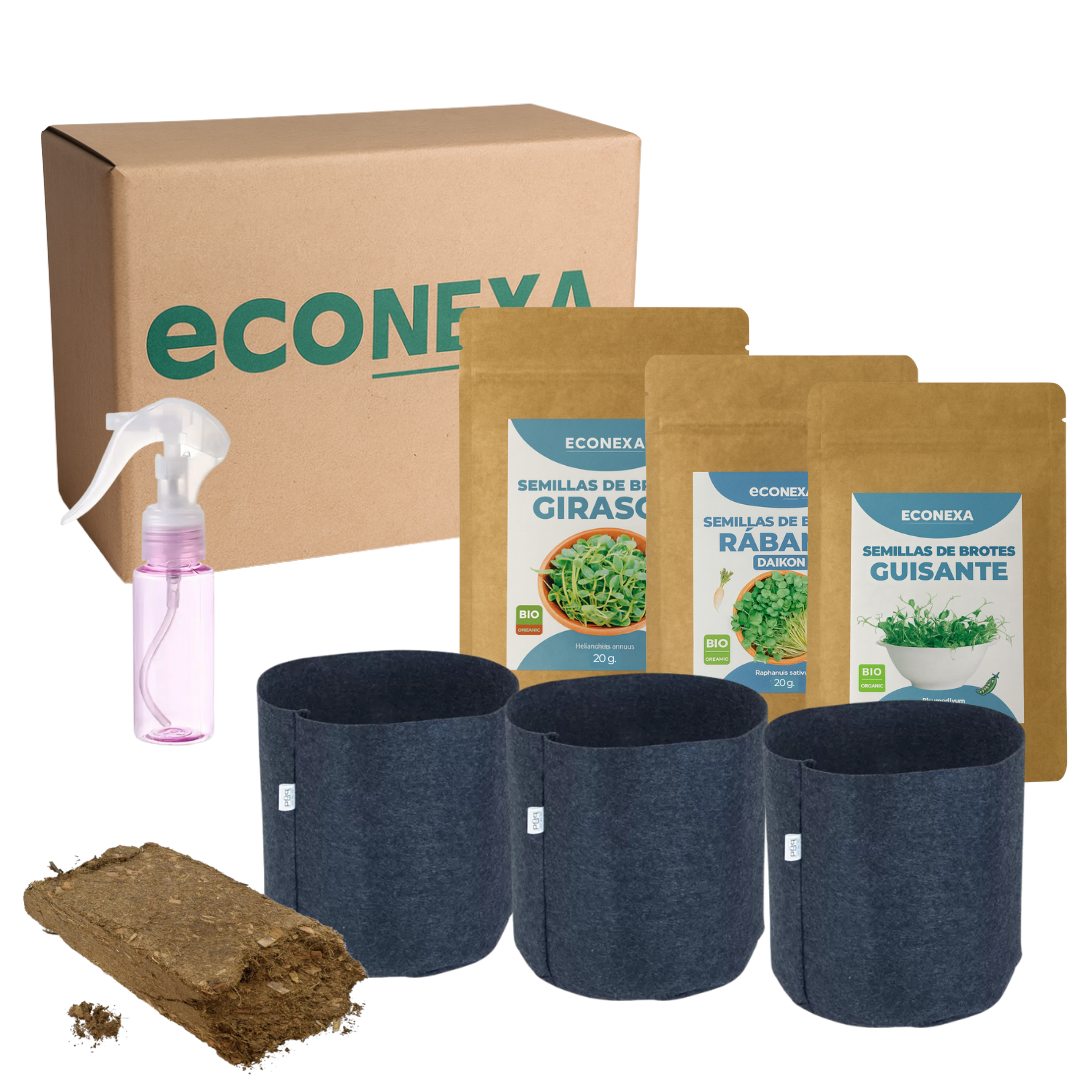 - 3 Bolsas de semillas de 20gr cada una de rábano,girasol y guisante
