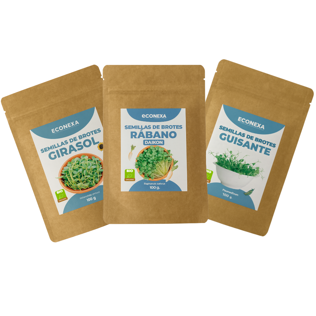 Elige 3 bolsas de 100 gr de diferentes variedades de semillas de microbrotes